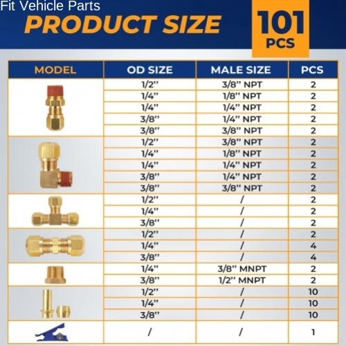 Description : Brass DOT Nylon Air Brake Fitting Assortment Kit 101 pcs w/ Air Tubing